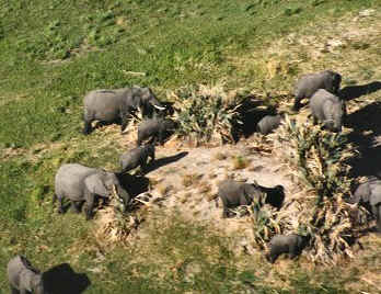 Buffalo herd (left) and Elephants in the lower reaches of the Delta |