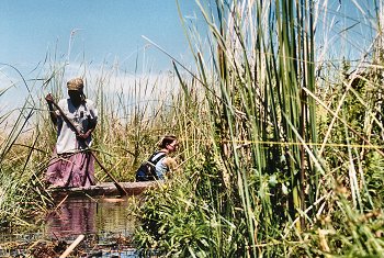 We travel in traditional Mokoro canoes in the shallower reaches of the Okavango Delta |