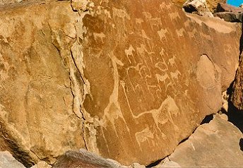 ![]() Climbing the steep rocky terrain to see the rock paintings |