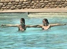 Debbie and Pattie entertain us at Ai-ais Hot Springs with a demonstration of Synchronised Swimming |