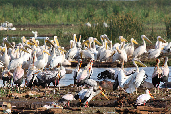![]() Pelicans and Yellow-billed Storks |