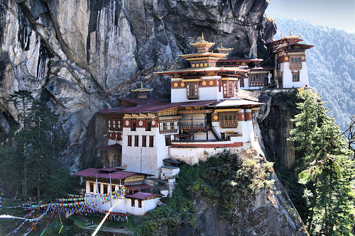| Cliff-face buildings near Paro - Drakha Dzong (Monastery) and Takshang Lhakang (Temple) | |
