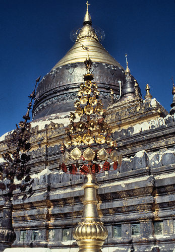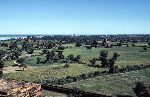![]() The landscape around the present Pagan on the Irrawaddy contains the ruins of hundreds of pagodas and temples mostly built around 1000 years ago |
