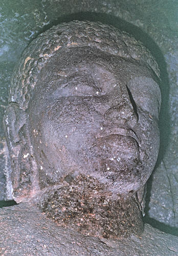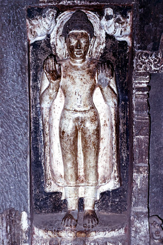 ![]() Buddhist cave at Ellora - 6th century ![]() Sculpture of Buddha in the cave |