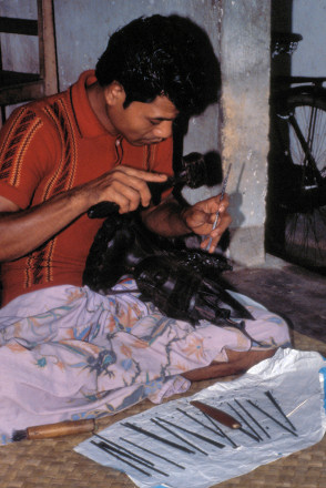 Above: Sculptors; below: some typical Bali sculptures / carvings |