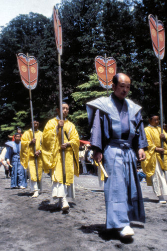 18 May Festival and Procession of 100's of local people dressed in historical costumes and carrying banners and caskets of the enshrined spirits of past famous people The Procession