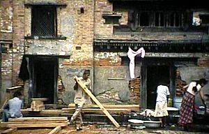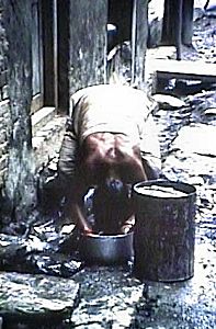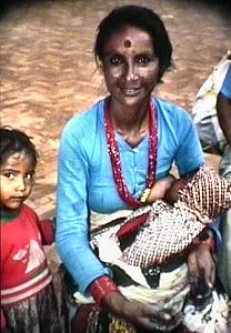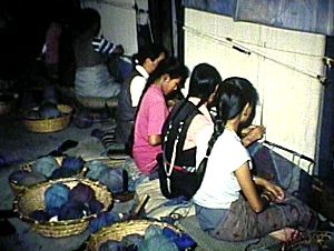 Above right and below: Tibetan refugees in a weaving/sewing workshop |