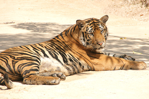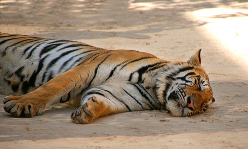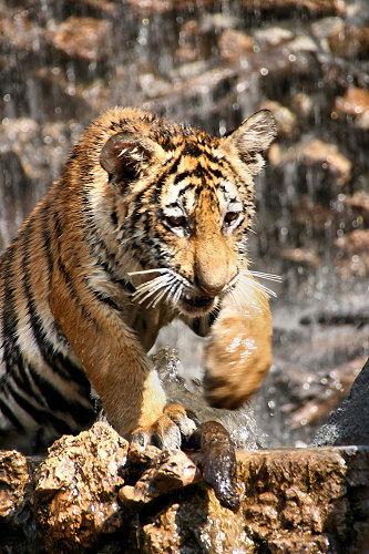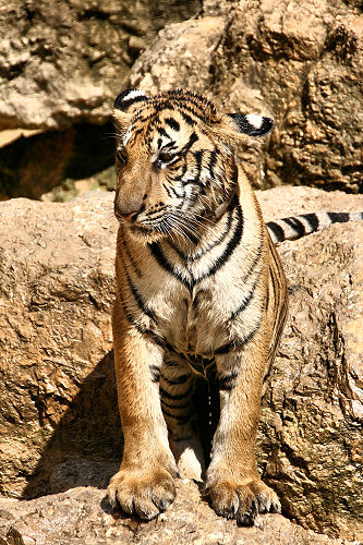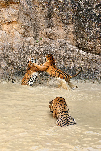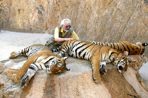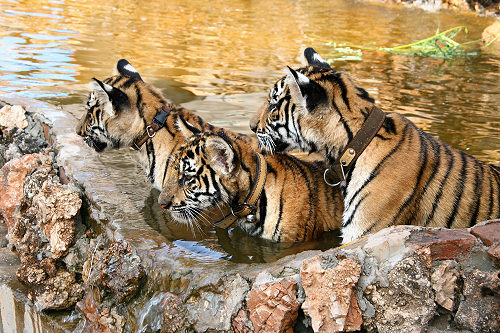 ![]() Carole-Anne helps to take the bigger tigers to the canyon pool area for photos, and tiger exercises |