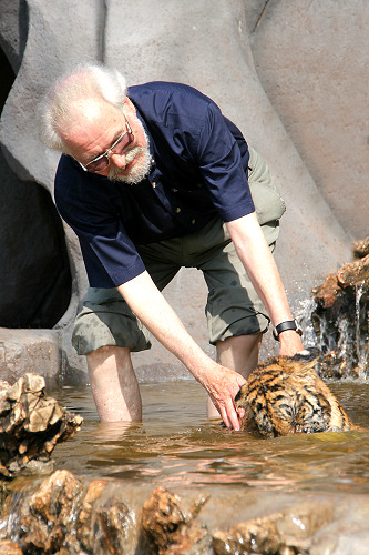 ![]() Carole-Anne helps to bring the youngest tigers to breakfast and afterwards to play in a pool |