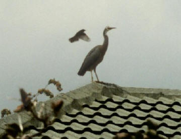 White Faced Heron used to take our fish before the wire netting was put on the pond |