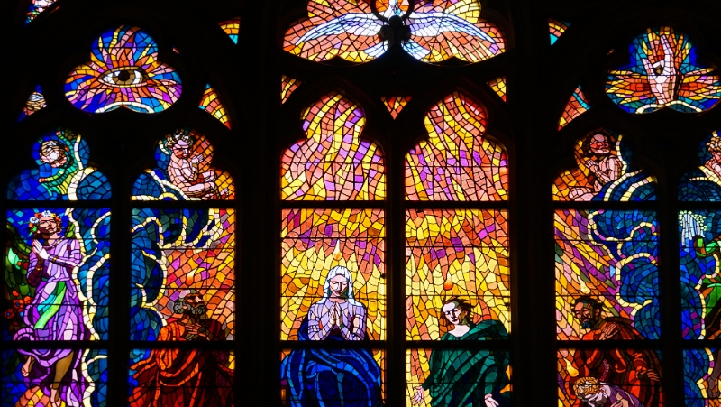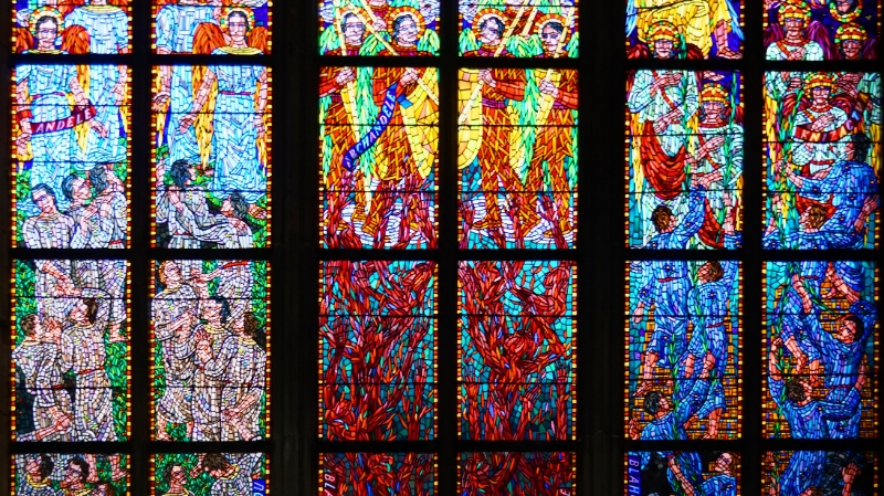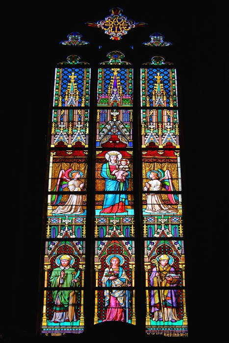 63 Close-up of stained glass window, St Vitus Cathedral, Prague Castle, Czech Republic |