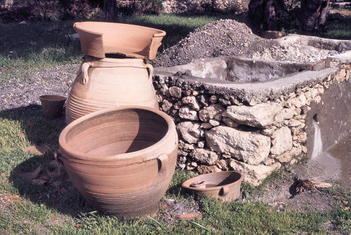 ![]() This Minoan Fresco was unearthed in the Bronze Age town of Akrotiri, situated on the island of Thera, now known as Santorini, just north of Crete. The town of Akrotiri was buried suddenly, around 1,540 BCE, in a huge volcanic eruption |