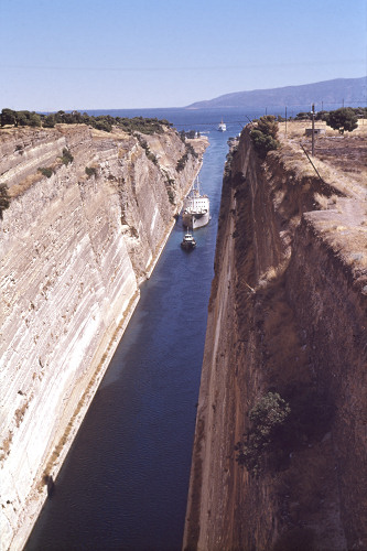 ![]() One end of the canal which cuts across the isthmus joining the mainland west of Athens at Loutraki to the Peloponnese peninsula |