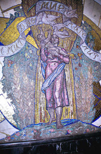 ![]() Above and below, examples of the prolific decorations underground in the Moscow Metro |