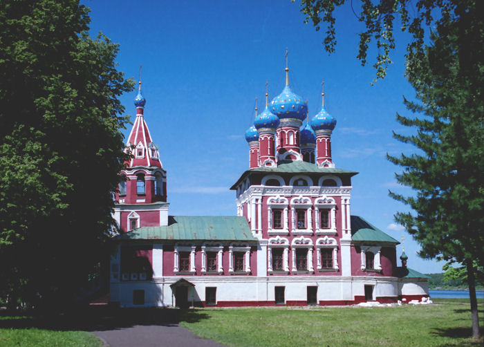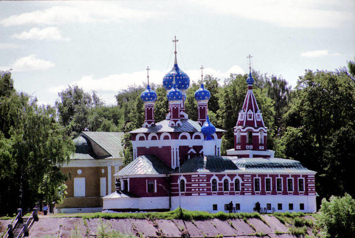 ![]() Church of Prince Dimitri on His Blood - seen from the River Volga |
