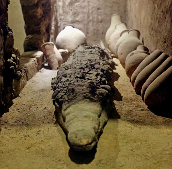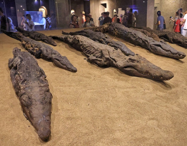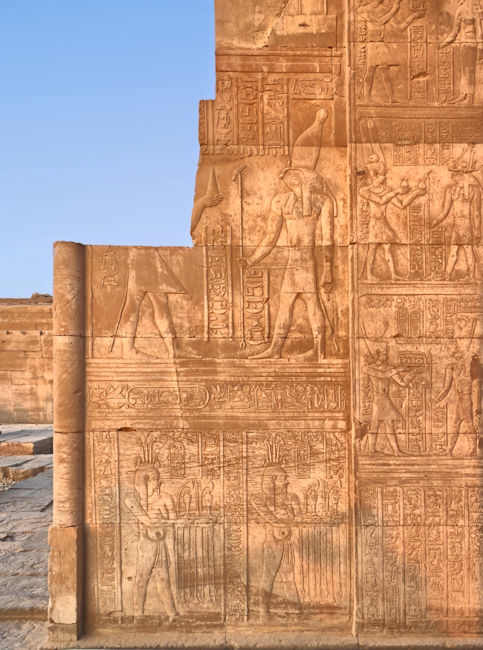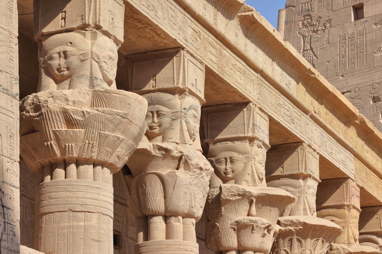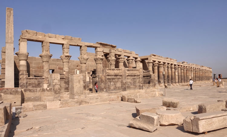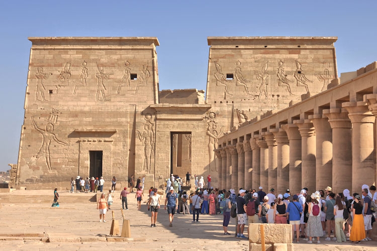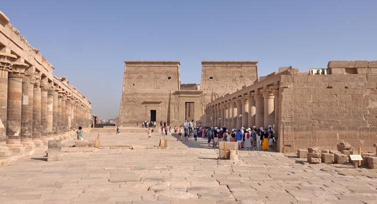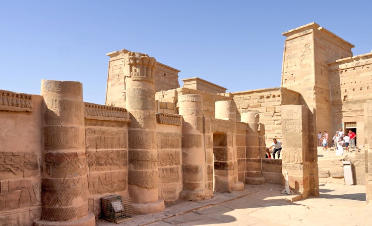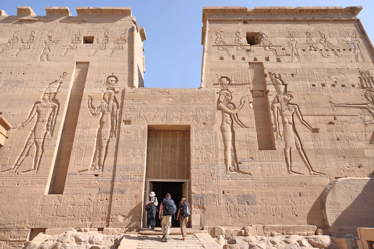The Temple of Kom Ombo was constructed during the Ptolemaic dynasty, 180–47 BC. There were courts, halls, sanctuaries and rooms duplicated for two sets of gods, the crocodile god Sobek et al, (and adjacent the temple is a museum containing mummified crocodiles). The other half of the temple is dedicated to the falcon god Horus the Elder et al. The Temple of Philae, constructed around 700 BC, was used up until 500 AD. It is located on the small island of Agilkia in the Nile between the Low Aswan Dam and the High Dam, having been moved from the nearby Philae Island where it was partly under water. We also saw the "Unfinished Obelisk" in the ancient stone quarries of Aswan.