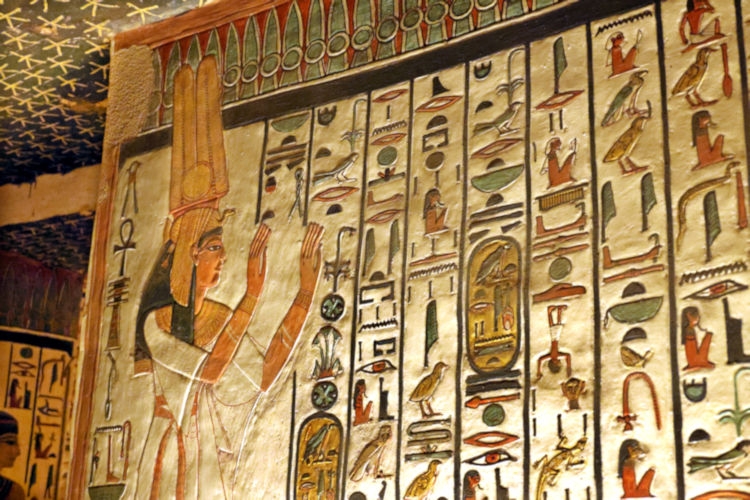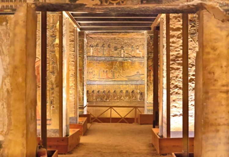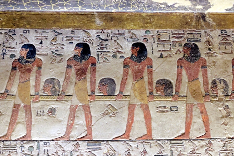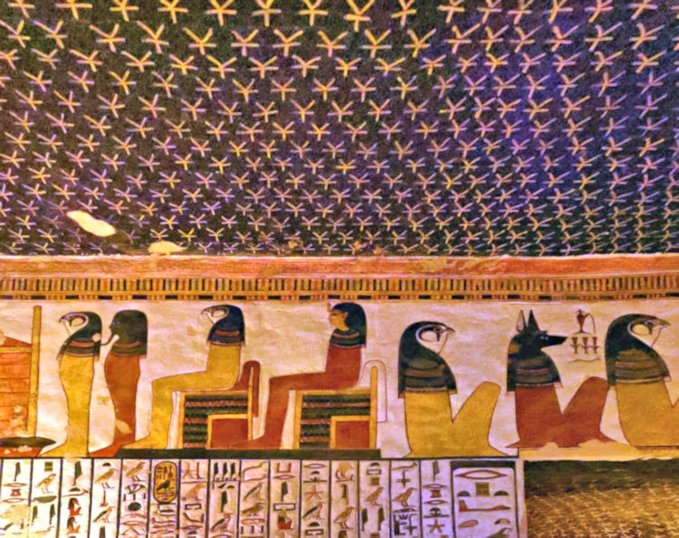 Photographs of the astonishing paintings in 4 of the best preserved tombs in the 2 famous valleys to the west of Luxor in the foothills of the Theban Mountains