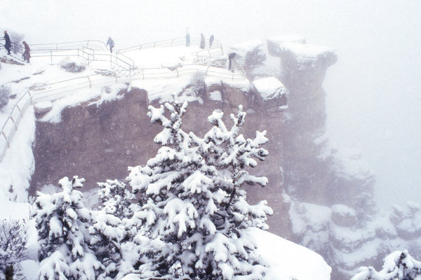 ![]() This is our view from the South Rim in a blizzard when we revisited the Grand Canyon in 1978 |
