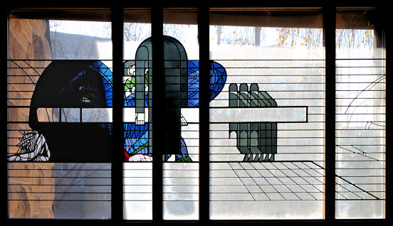 The Stations of the Cross are represented in Stained Glass |