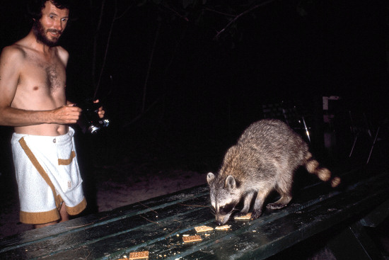 ![]() Racoons wake us up when they attack our neighbour's laid out out breakfast in the campsite |