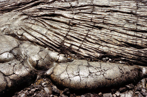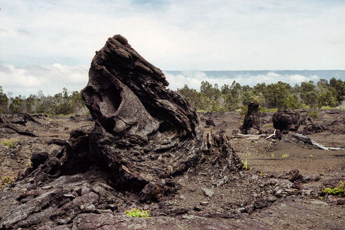 ![]() Lava flows round the base of a tree, the lava cools as the tree burns out. |