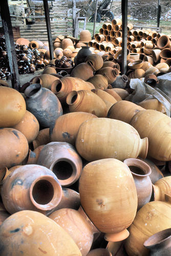![]() Roadside pottery sales - and below |