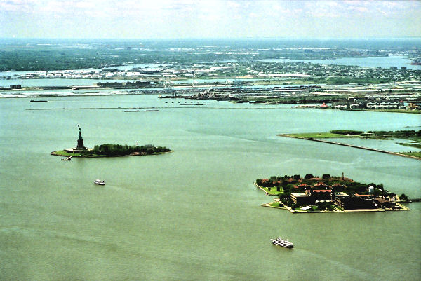 ![]() Looking SOUTH EAST are Ellis Island and Liberty island |