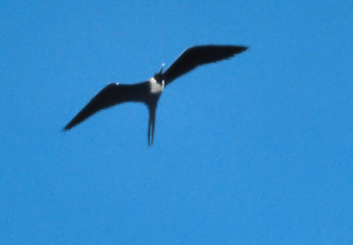 ![]() The male Frigate Birds blow up their red pouches to attract the females |