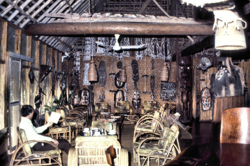 ![]() Inside the tourist lodge; it is constructed a bit like a village "Men's House" |