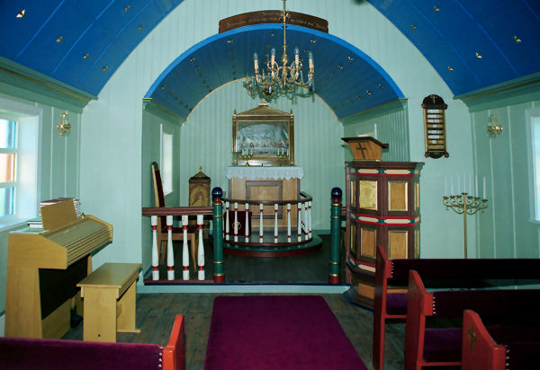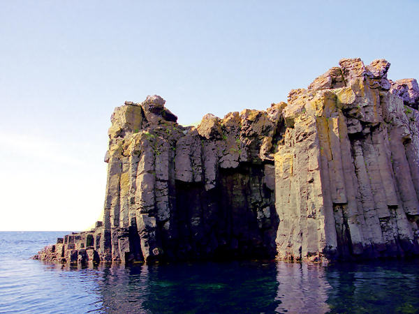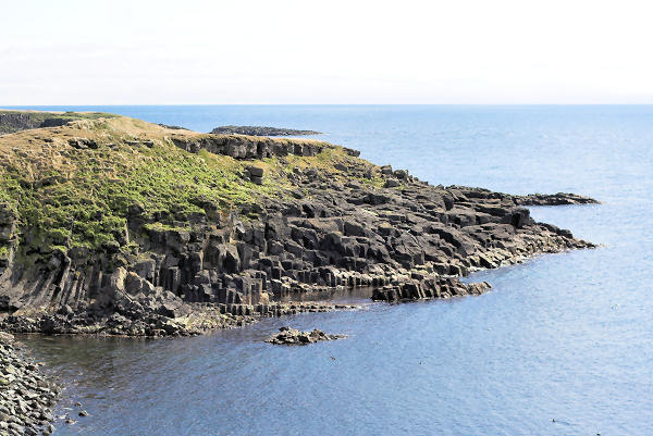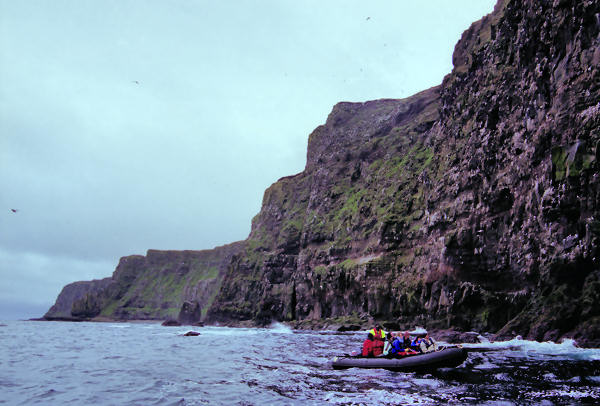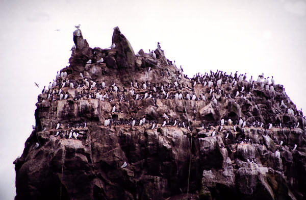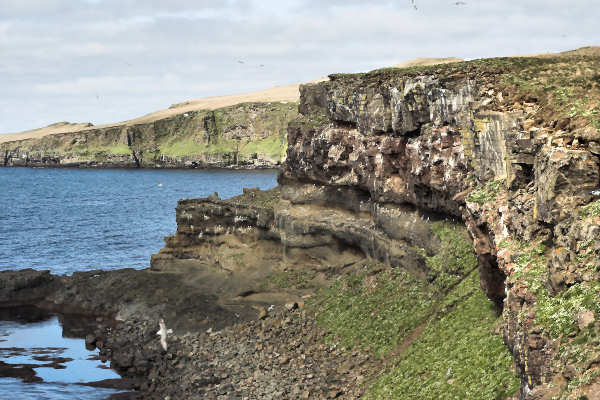 ![]() Approaching Grimsey - bird cliffs on the left, settlement on the right |