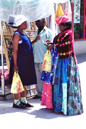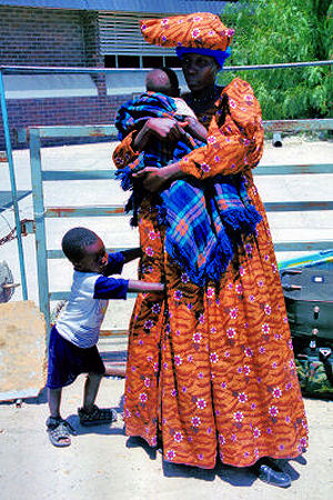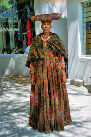The traditional dress of the Herero women - with contrast above right! |