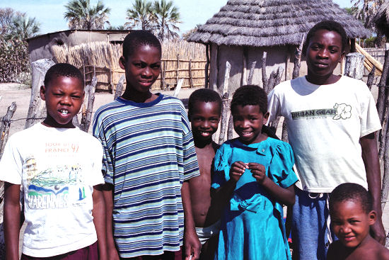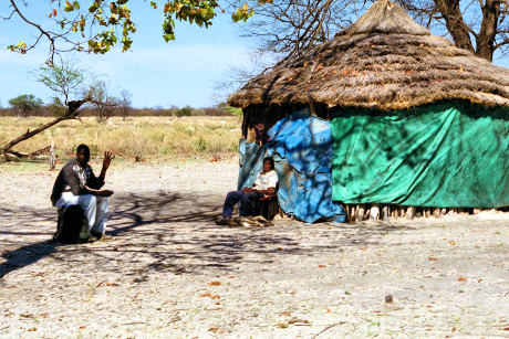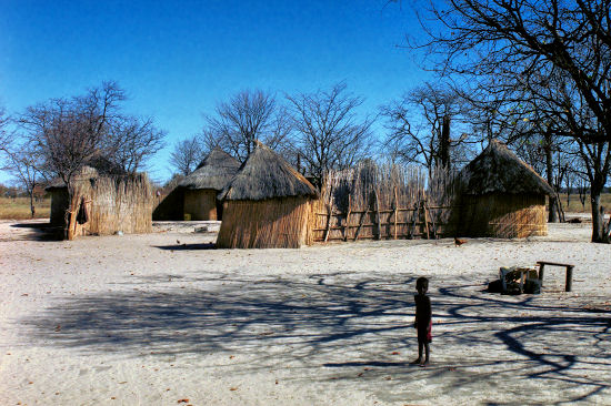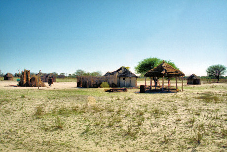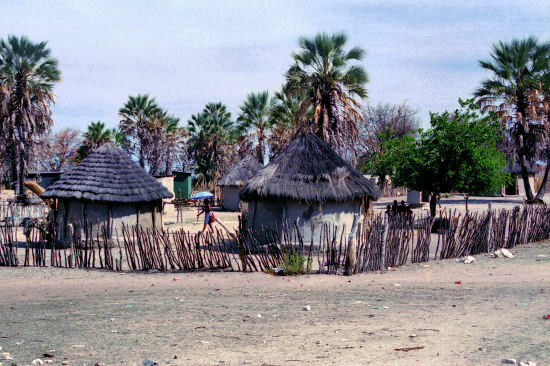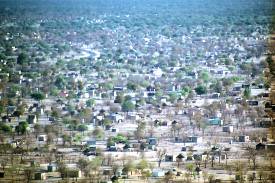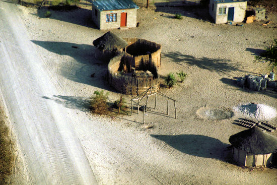 ![]() Individual family settlements stretching out towards the Okavango - close up below |