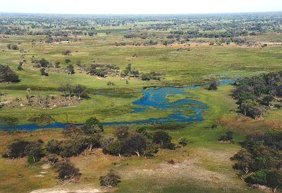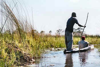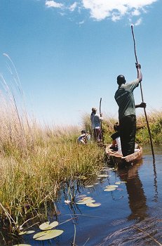We travel in traditional Mokoro canoes in the shallower reaches of the Okavango Delta |
