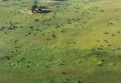 Buffalo herd (left) and Elephants in the lower reaches of the Delta |