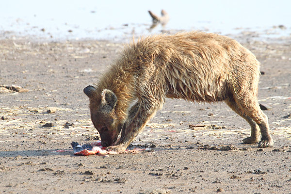 ![]() Spotted Hyena finishing off a Flamingo he caught in the lake |