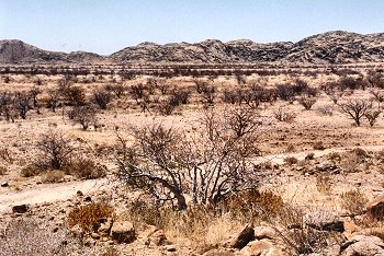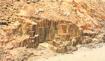 Leaving Twyfelfontein, "Organ Pipe Rocks" on one side of the road, and Klipspringer on the other side |