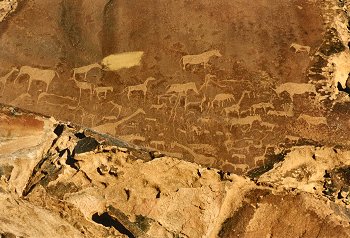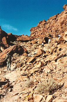 ![]() Climbing the steep rocky terrain to see the rock paintings |
