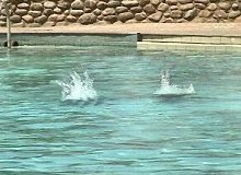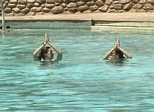 Debbie and Pattie entertain us at Ai-ais Hot Springs with a demonstration of Synchronised Swimming |