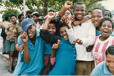 People show their happiness at the county's first multiracial elections |