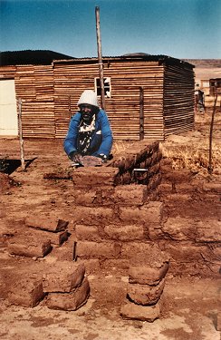 Local mud and grass are used to make bricks to build one's own house