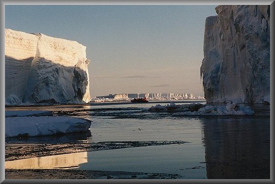 ANTARCTICA In a rubber dinghy amongst the icebergs at Cape Roget on the west coast of the Ross Sea