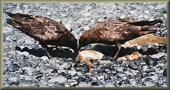 Skuas eating remains of a seal