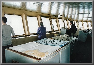 The bridge of the Kapitan Khlebnikov is high up and extends the full width of the ship.