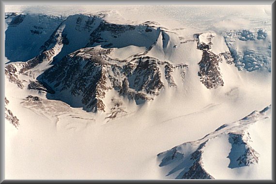 View from the air of a glacier in the mountains of Victoria Land on the west coast of the Ross Sea