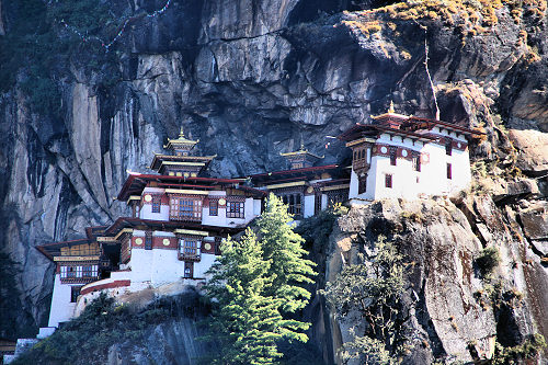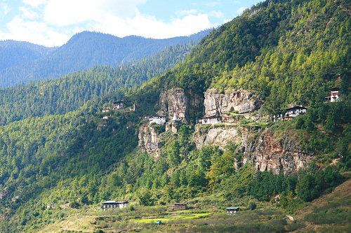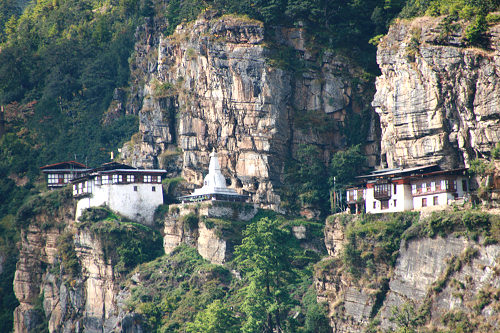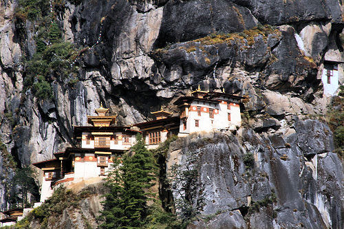 | Cliff-face buildings near Paro - Drakha Dzong (Monastery) and Takshang Lhakang (Temple) | |