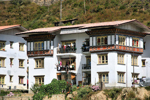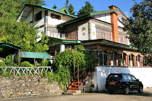 ![]() Our hotel in Thimphu, with typical outside decorations | |