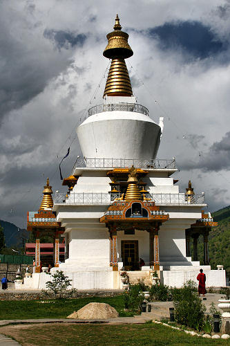Upper left: the Thimphu Memorial Chorten (stupa); and upper right and