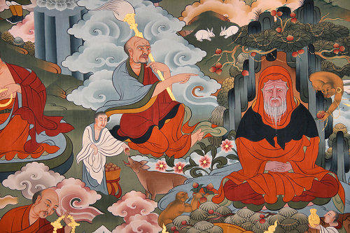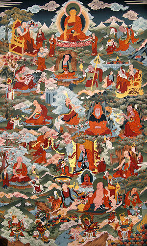 Thankas - Buddhist style religious paintings mounted on silk brocade | |