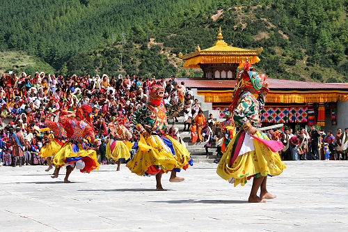 | Thimphu (page 4 of 5) - the dancers act out the traditional Buddhist stories at the Tshechu Festival | |