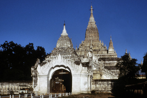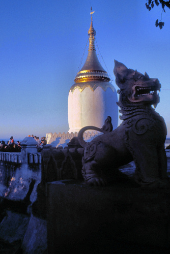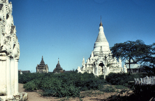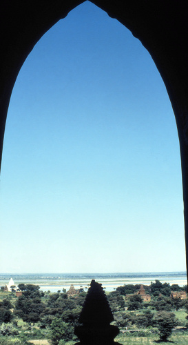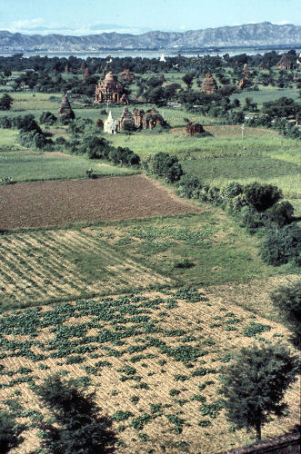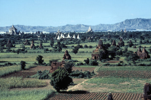 ![]() The landscape around the present Pagan on the Irrawaddy contains the ruins of hundreds of pagodas and temples mostly built around 1000 years ago |